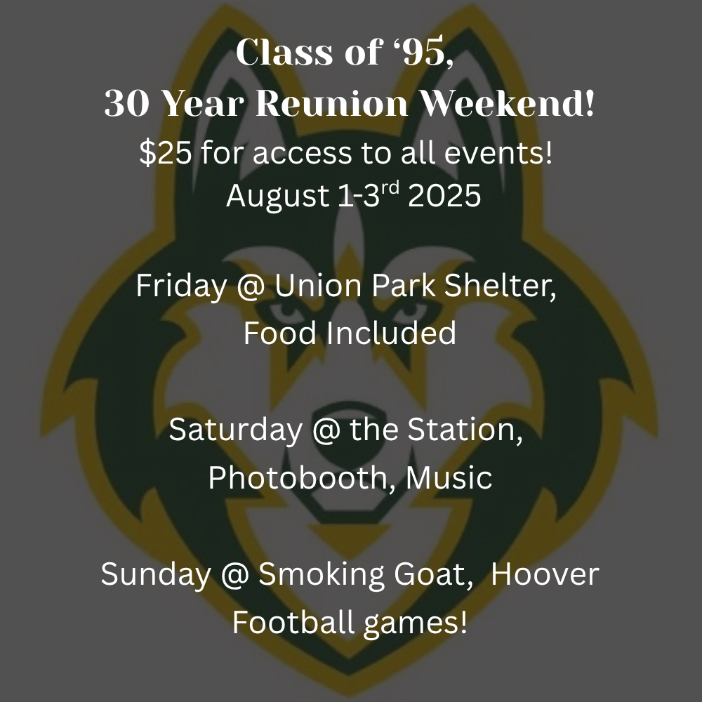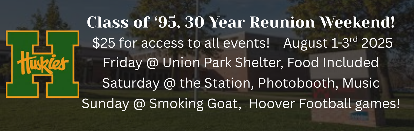 Join us for the Hoover High School reunion! Celebrate our memories, reconnect with friends, and enjoy the spirit of our Huskies.